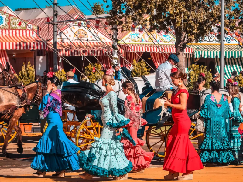 - Feria de Abril en Sevilla: más que una fiesta, es una explosión de color, música flamenca y bailes. Refleja la alegría y la pasión del sur de España.