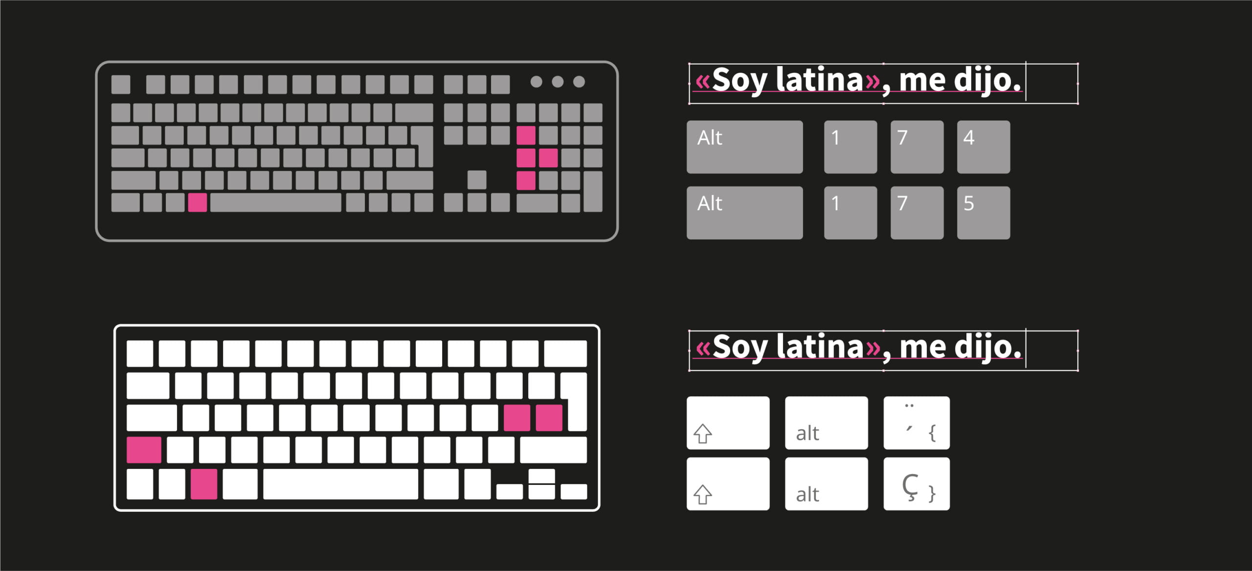 Las comillas angulares no aparecen en los teclados de ordenador como primera opción. Para insertarlas hay que escribir las siguientes combinaciones: